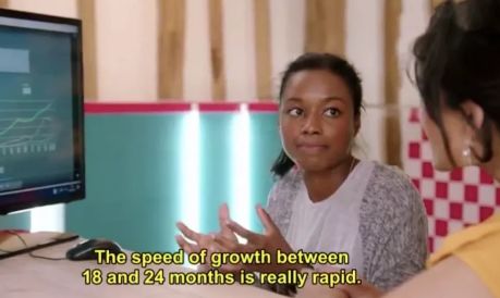 在纪录片中,语言专家Michelle Peter记录了不同语言能力的宝宝,在一岁到两岁间词汇量的积累情况。